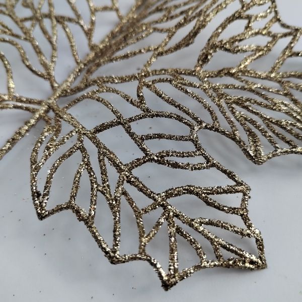 Csillámos perzsgőarany juharlevél leveles díszítő – 1 szál. Teljes hossza kb. 35 cm. Asztaldíszek, kopogtatók egyéb dekorációs díszítők kiváló alapjául szolgáló dekorációs elem. Vázába téve is fokozza az ünnepi hangulatot.