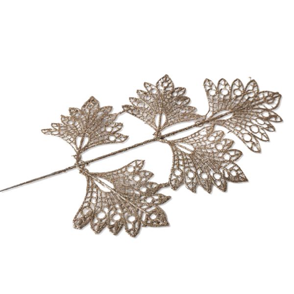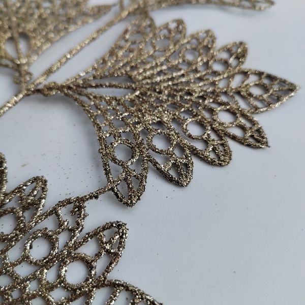 Csillámos pezsgőarany páva legyező levél – 1 szál. Asztaldíszek, kopogtatók egyéb dekorációs díszítők kiváló alapjául szolgáló dekorációs elem. Vázába téve önmagában is mutatós.