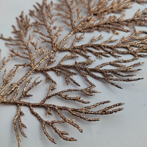Csillámos rosegold korall leveles díszítő – 1 szál