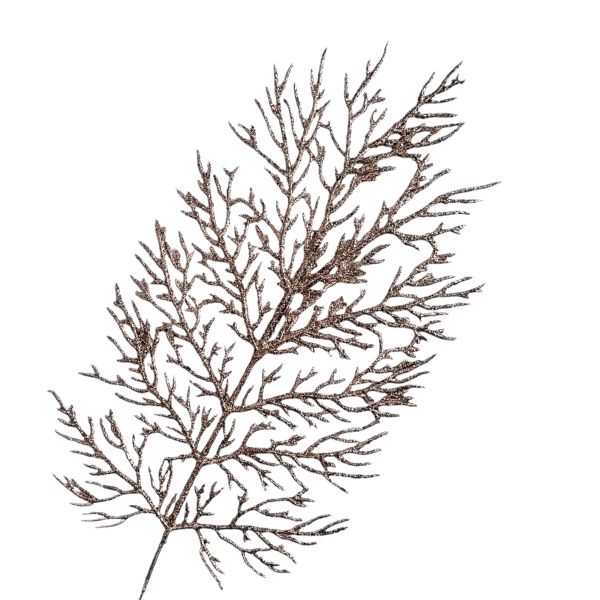 Csillámos rosegold korall leveles díszítő – 1 szál. Asztaldíszek, kopogtatók egyéb dekorációs díszítők kiváló alapjául szolgáló dekorációs elem. Vázába téve önmagában is mutatós.