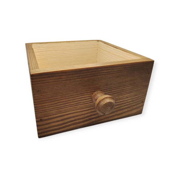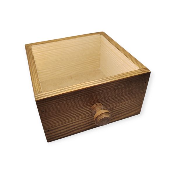DD borovi fa box barna fiókgombbal 15 x 15 x 8 cm 1 db. Páratlan szépségű, igényes kézzel készült borovi fa boxaink arra várnak, hogy otthonaitok ékei legyenek. Alkalmas dekorációs alapnak, tárolónak, ajándéknak. A dobozok, tálcák saját gyártásúak.