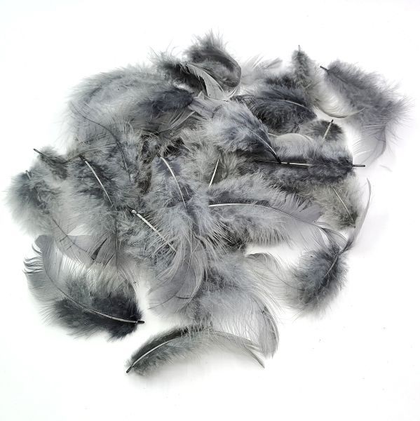 Exkluzív szürke madártoll – 3 g. Vegyes méretű tollak. Otthoni díszek, lakásdekorációk készítésére kiválóan alkalmas dekorációs elem.
