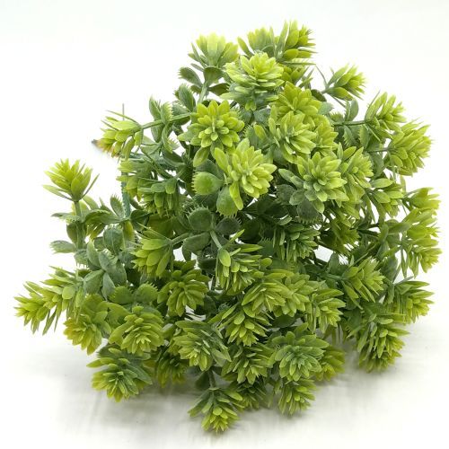Fogazott leveles zöld műanyag díszítőelem 6 szál. Asztaldíszek, kopogtatók egyéb dekorációs díszítők kiváló alapjául szolgál ez a zöld díszítőelem.