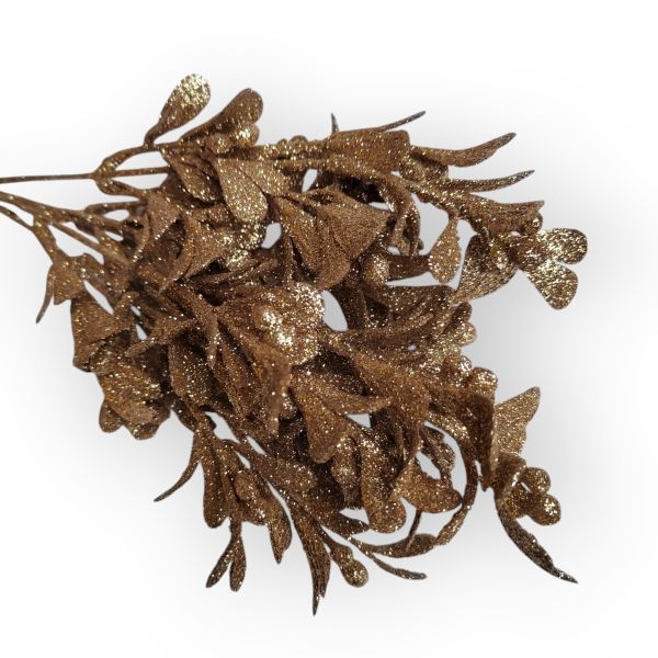 Glitteres bogyós csokor – arany– 1 csokor.Méret: 35 x 13 cm. Asztaldíszek, kopogtatók egyéb dekorációs díszítők kiváló alapjául szolgáló dekorációs elem. Vázába téve is fokozza az ünnepi hangulatot.