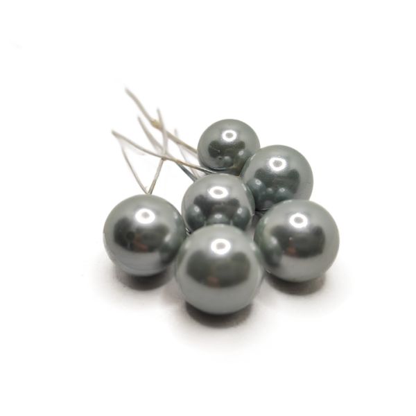 Gyöngyházfényű betűzős bogyó country zöld – 6 db, 1,8 cm. Kiegészítő díszítő elemként használható dróton lévő színes bogyó.