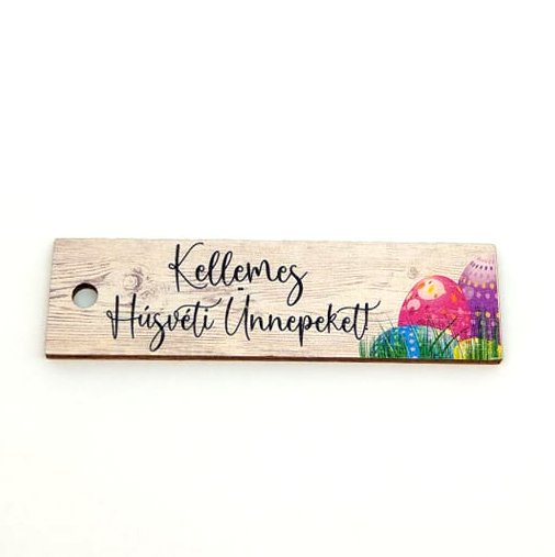 Kellemes húsvéti ünnepeket tojásokkal fűzhető festett fatábla 2 x 7 cm 1 db.