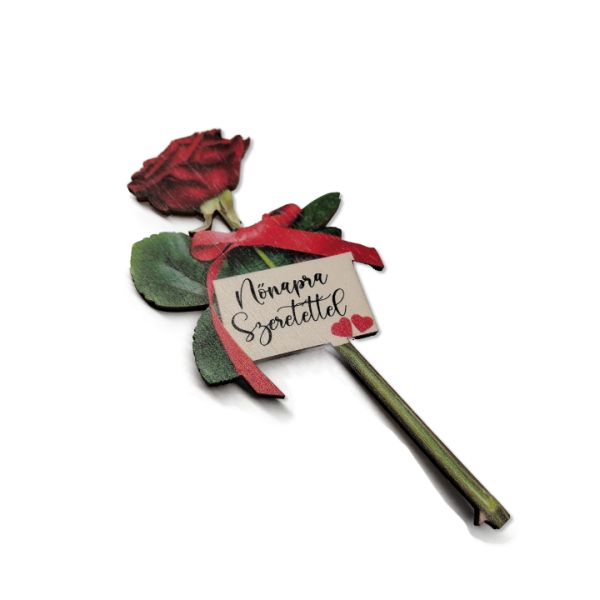 Nőnapra szeretettel rózsaszál szalaggal 13 x 6 cm 1 db.