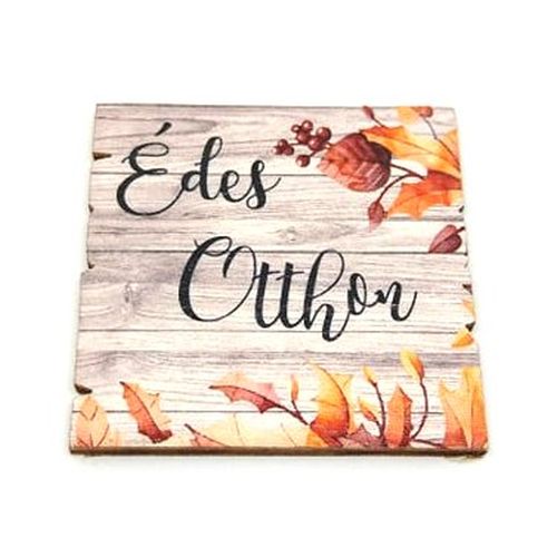 Őszi édes otthon feliratú festett fatábla négyzet 5 x 5 cm 1 db.