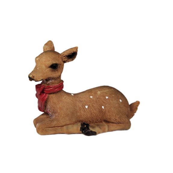 Piros sálas fekvő őzike 1 db, mérete kb.: 8 x 5,5 x 3 cm. Otthoni díszek, lakásdekorációk készítésére használható őzike kerámia figura. A termék törékeny!