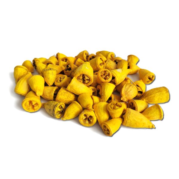 Sárga eukaliptusz gomb kicsi termés 40 g. Asztaldíszek, kopogtatók egyéb dekorációs díszítők kiváló alapjául szolgáló eukaliptusz gomb mini terméscsomag.