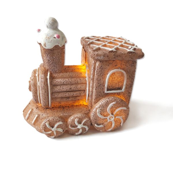 Világítós mézeskalács vonat (nagy) – 1 db. Karácsonyi város/falu dekorációhoz használható ledes dekorációs elem. Önmagában is hangulatos dekorelem. A termék törékeny!